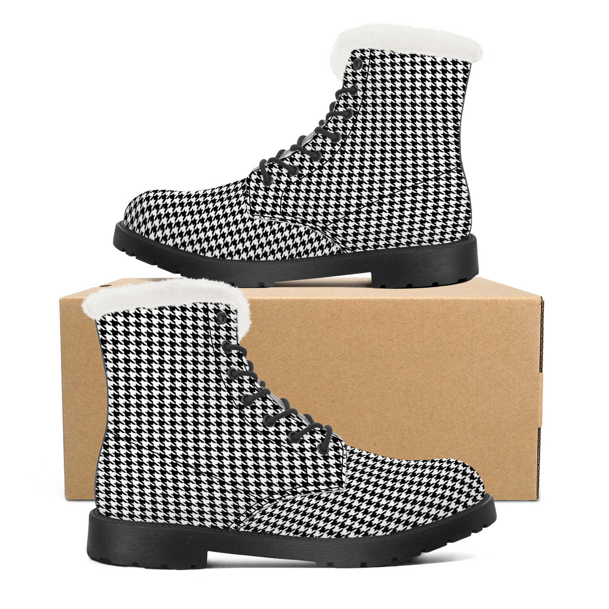 • Eco-friendly rubber material soles on faux fur synthetic leather boots