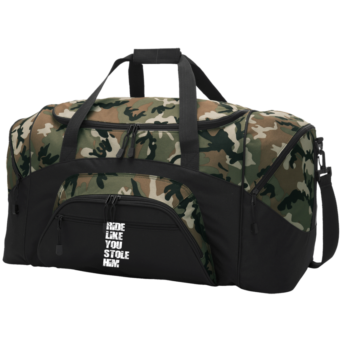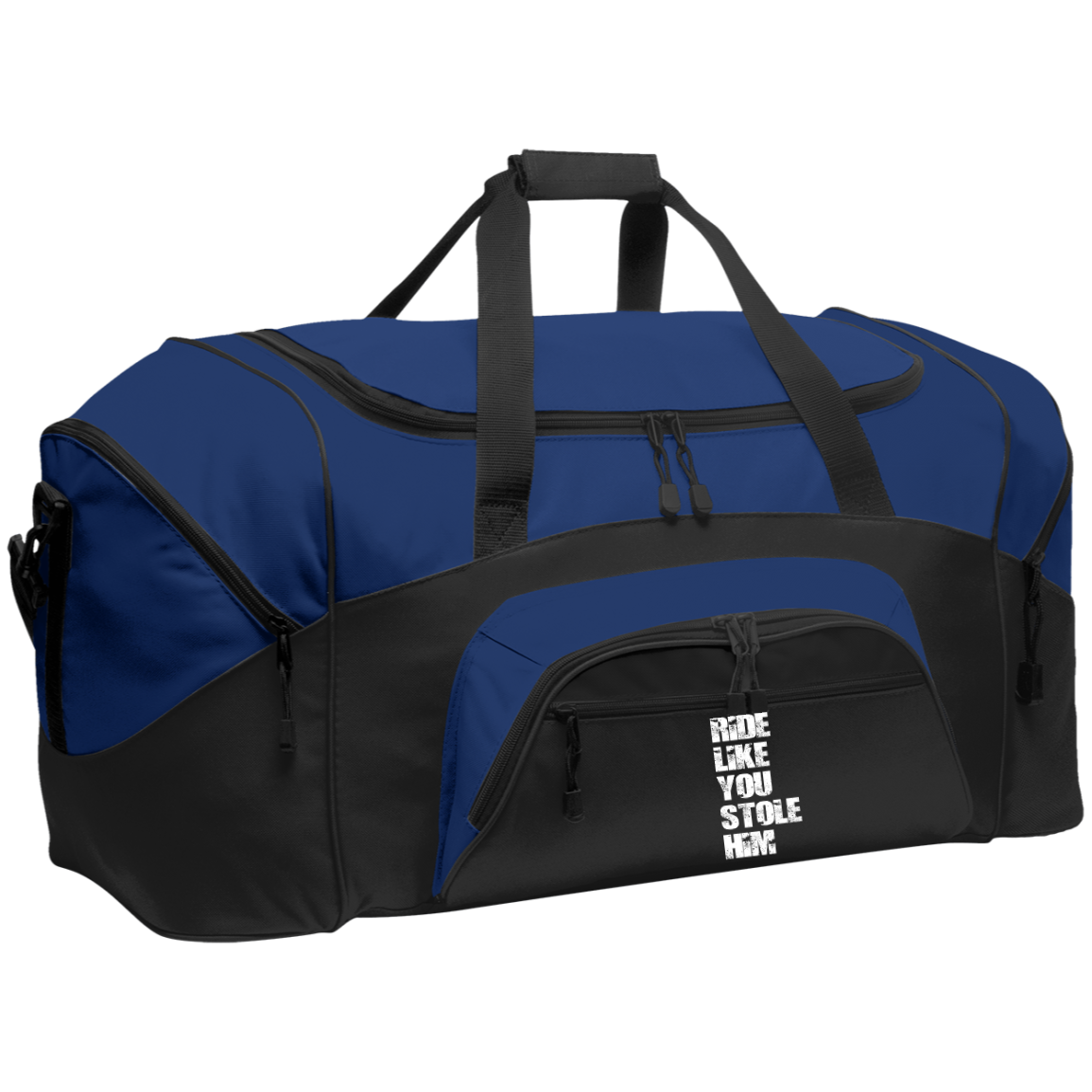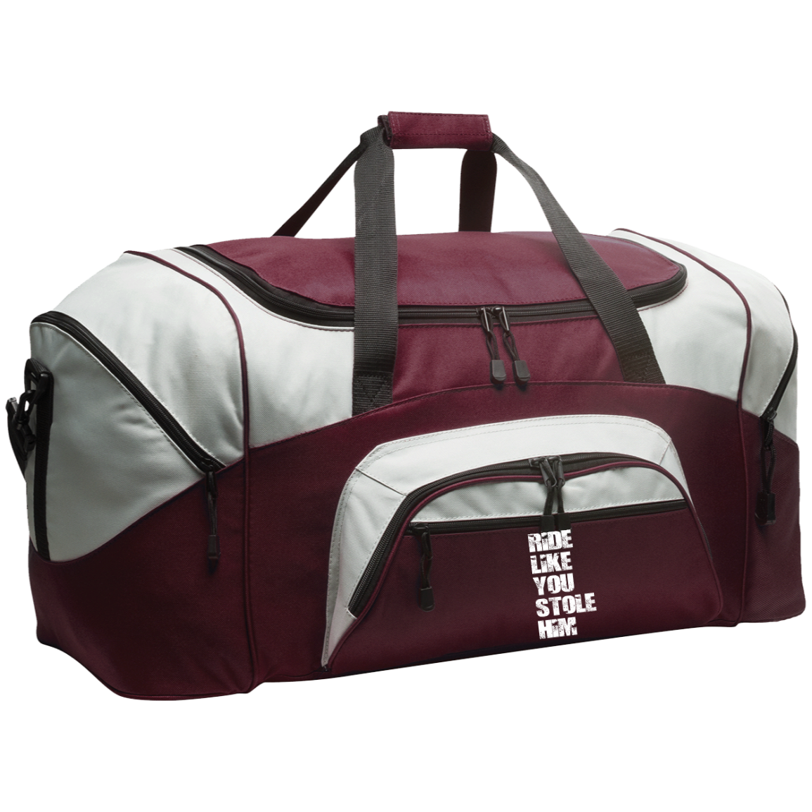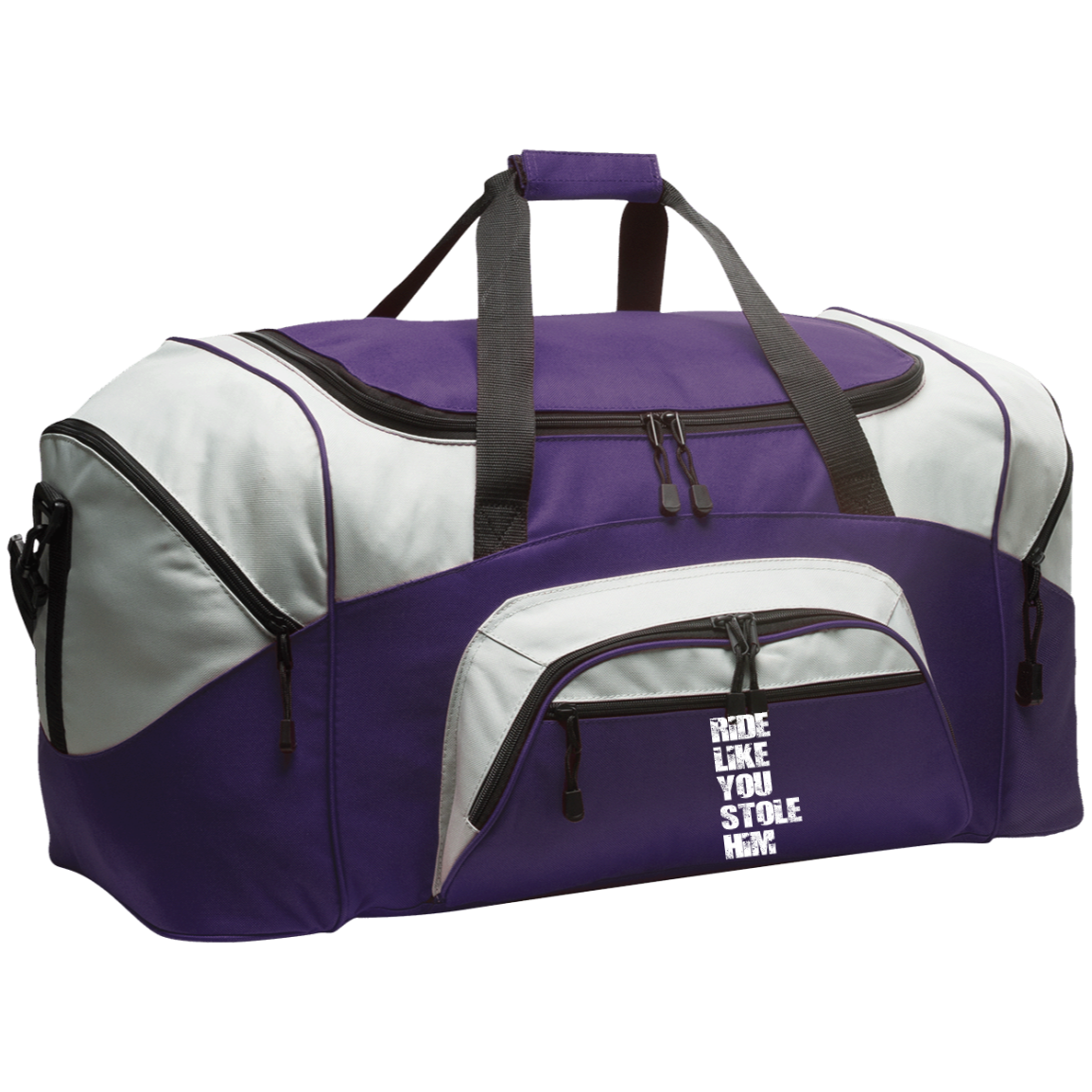 RIDE LIKE YOU STOLE HIM (WHITE) BG99 Colorblock Sport Duffel